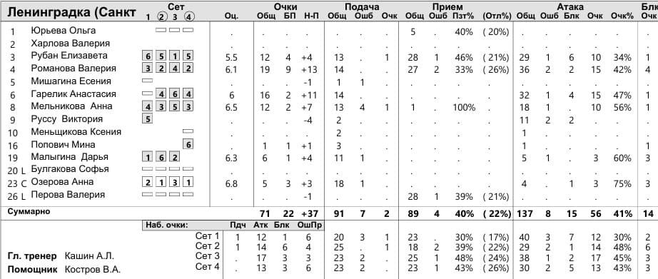 | Ленинградка | 20 | 25 | 23 | 22 | 1 |