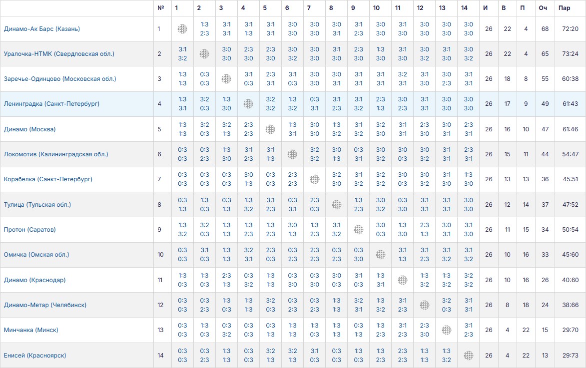 25 тур 27 февраля 2026 Динамо-Ак Барс Ленинградка 1:3 (26:28, 26:24, 24:26, 22:25)