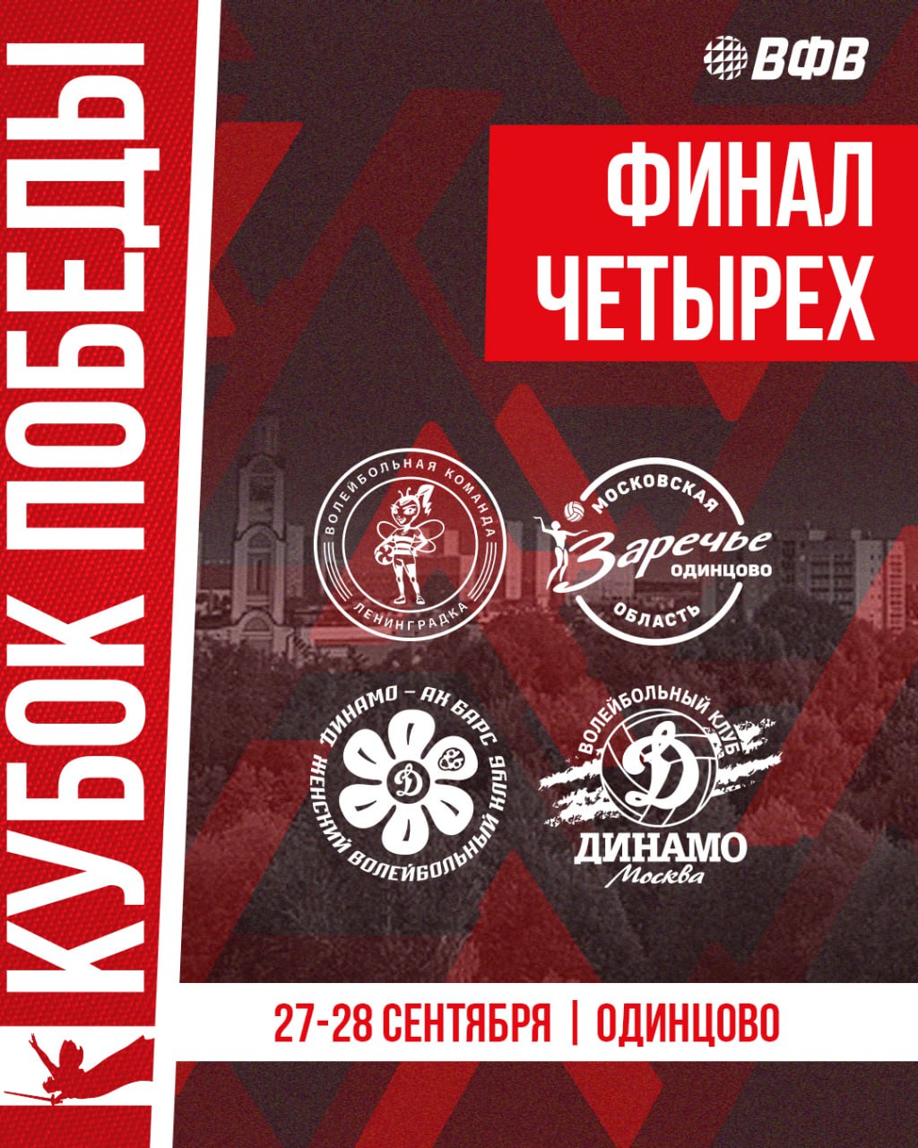 На площадке Одинцовского спортивного-зрелищного комплекса проходит «Финал четырёх» Кубка Победы. Розыгрыш посвящён 80-летию победы в Великой Отечественной войне и памяти советского волейболиста, тренера и функционера Владимира Ивановича Саввина.